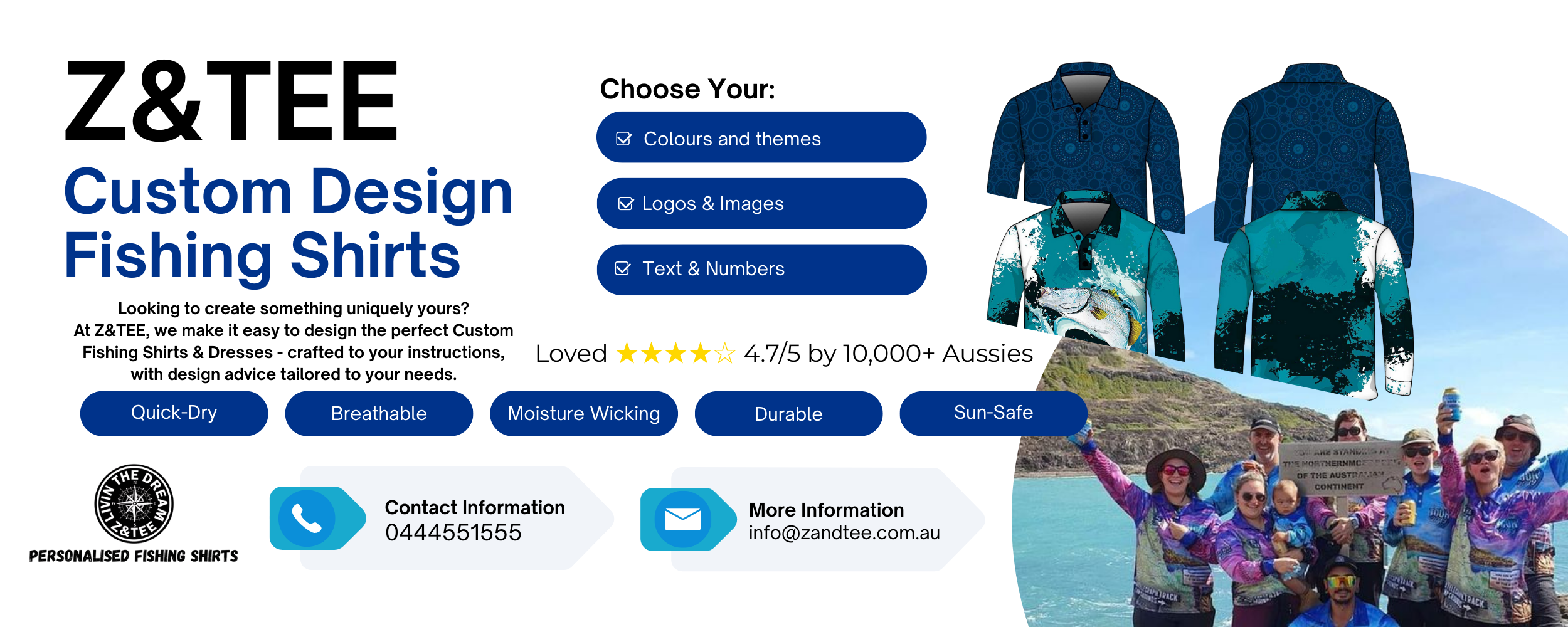 Z&TEE Fishing Shirts & Dresses offer great sun protection and are designed with features like quick-dry, moisture-wicking technology, and breathable fabrics to keep you cool & protected under the Aussie sun all day long.