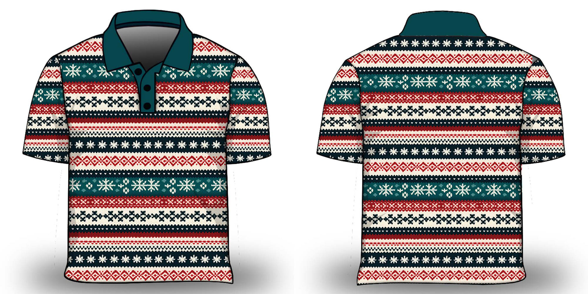 All the festive Fair-Isle vibes, none of the heavy knit. Evergreen, cranberry and cream snowflake stripes give this shirt the classic Christmas-jumper look - printed on lightweight performance fabric built for Aussie summer.