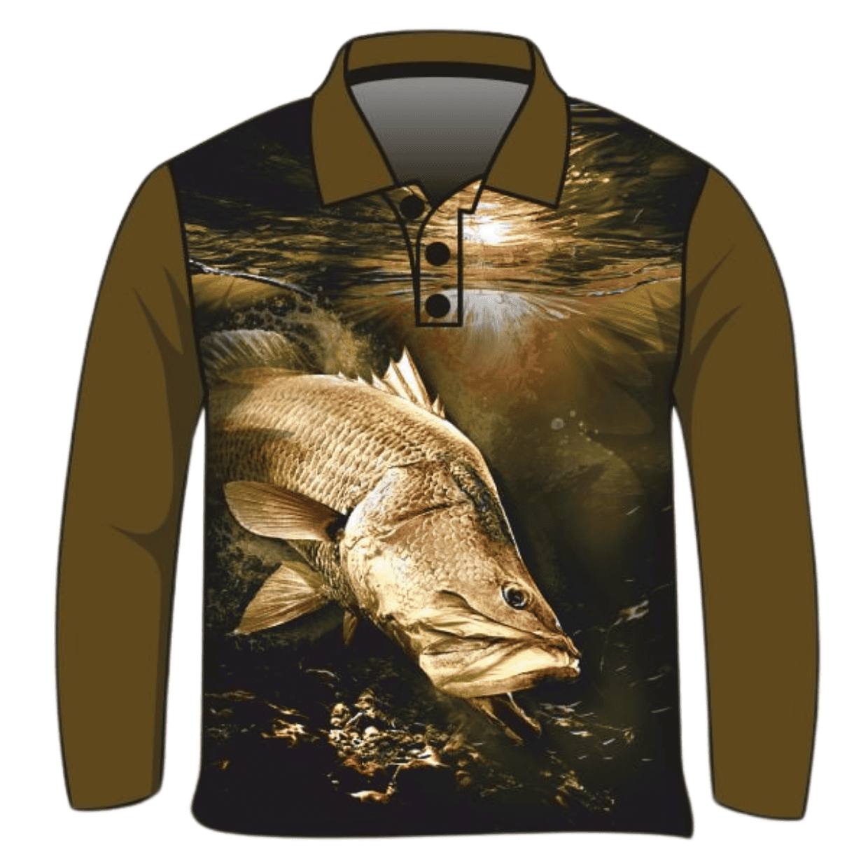 Looking for a fishing shirt that will keep you cool and comfortable on those hot, summer days? Look no further than the Black Barramundi Gold Fishing Shirt the perfect shirt for a day out fishing for barramundi! Featuring a stylish design with the famous Aussie Barra, this shirt is sure to turn heads on the water.