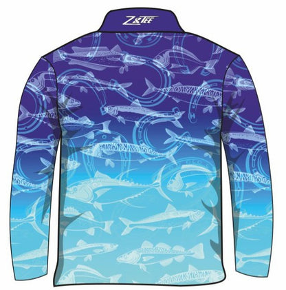 Get ready to make a big catch and stand out on the water with our Lucky Pattern Blue Fishing Shirt! A great design for Fishing Competitions or matchy matchy. Other colours also available. This versatile shirt features sun smart quick-dry fabric, perfect for long days on the boat or creek. Don't forget to wear it for good luck!