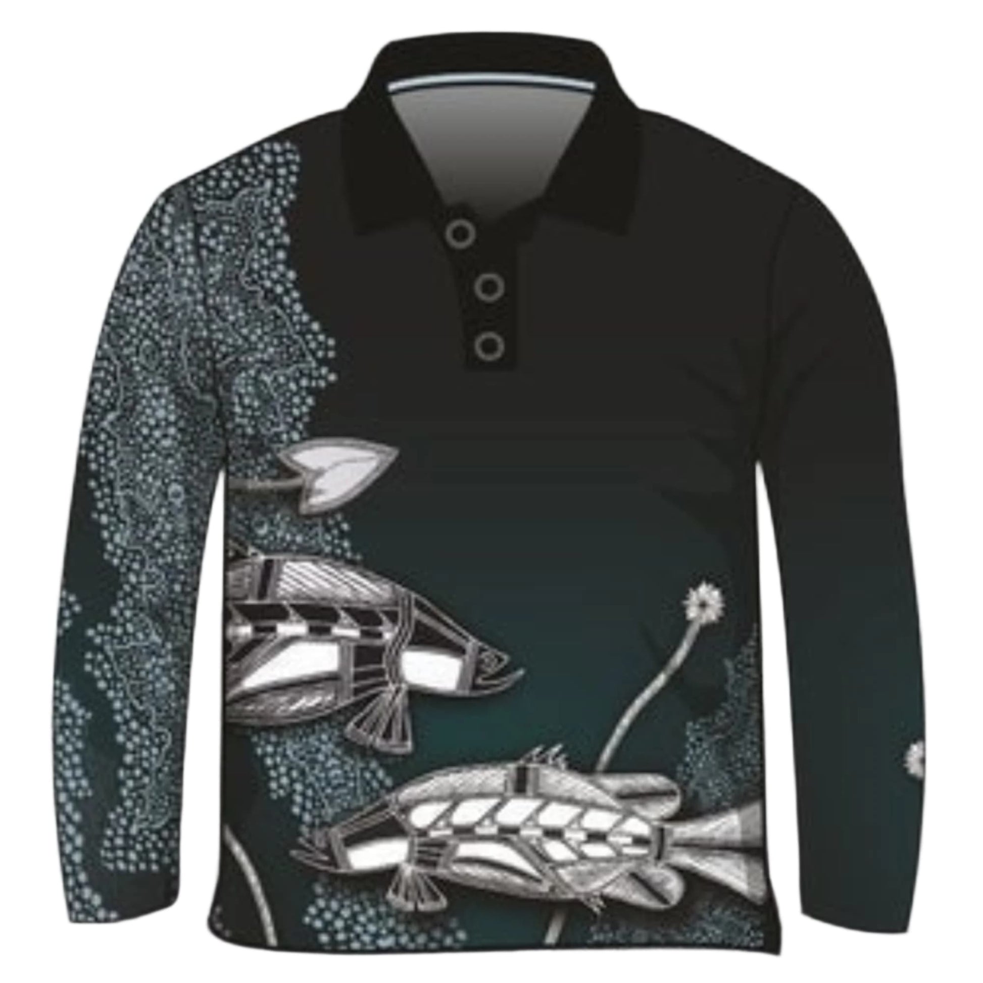 Indigenous | Waterhole Barramundi Black Fishing Shirt ★Pre-Order★