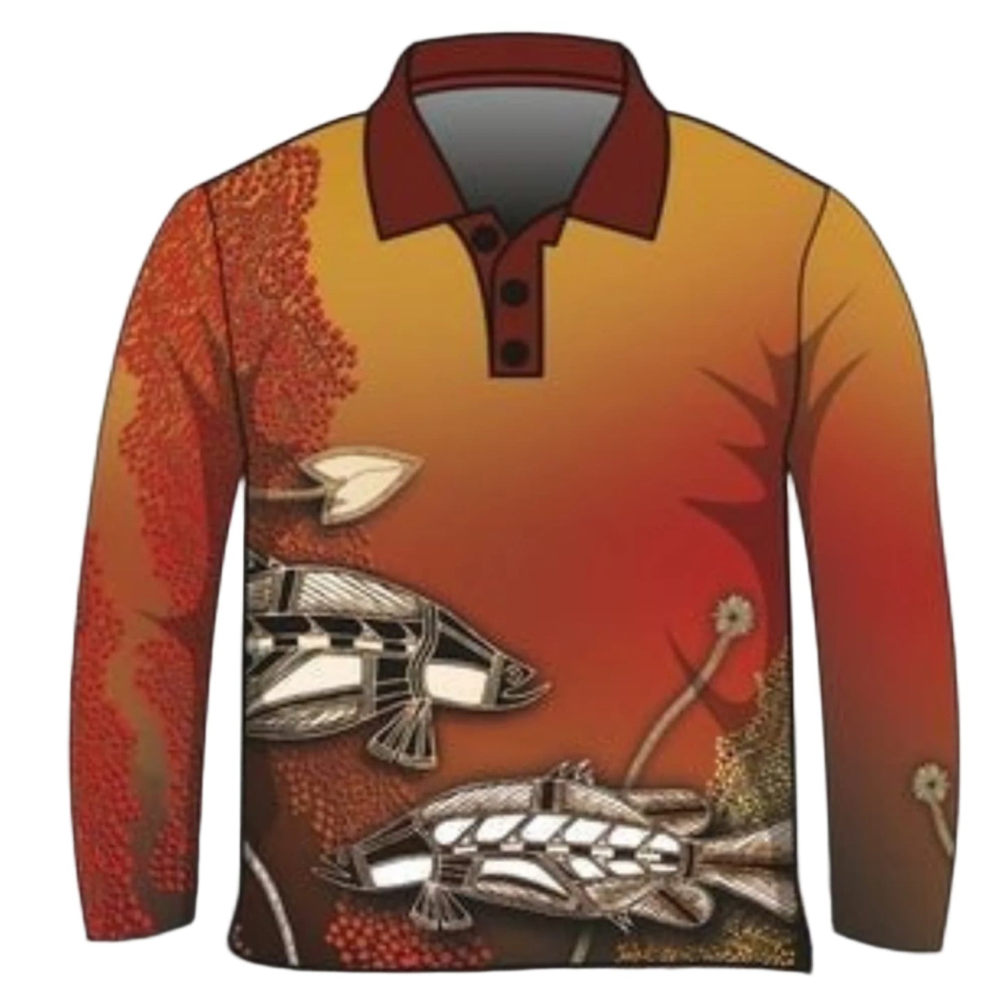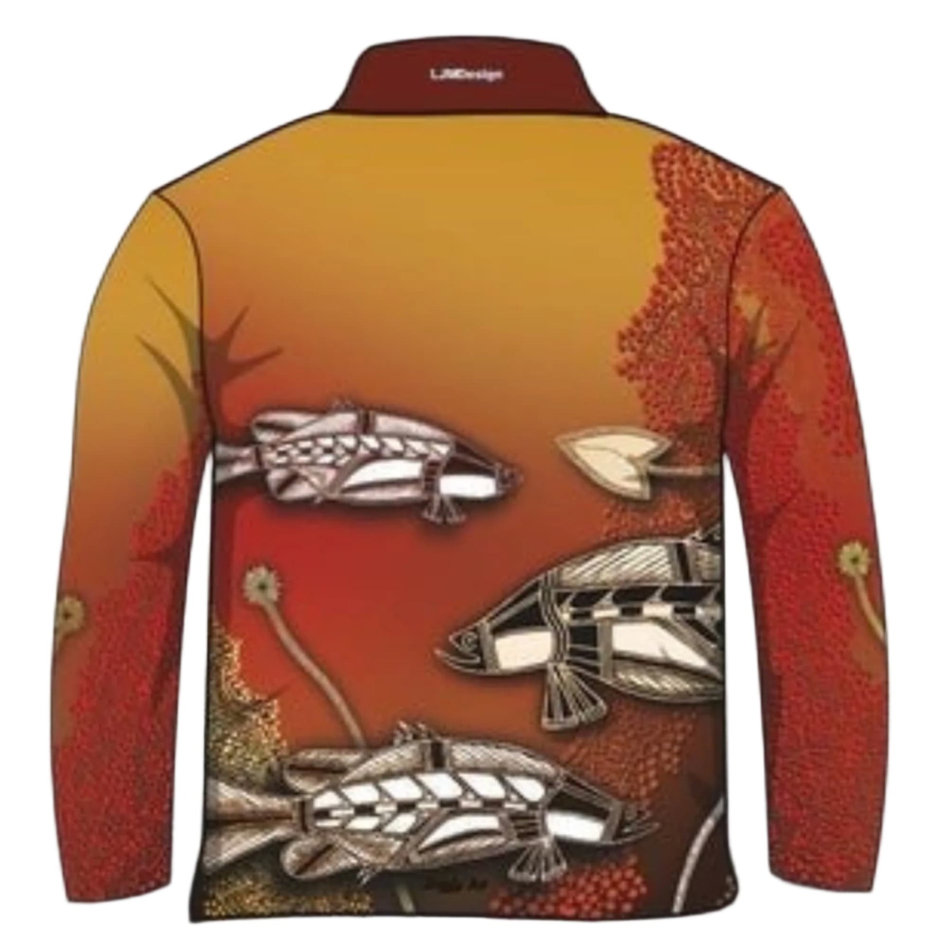 Indigenous | Waterhole Barramundi Ochre Fishing Shirt ★Pre-Order★