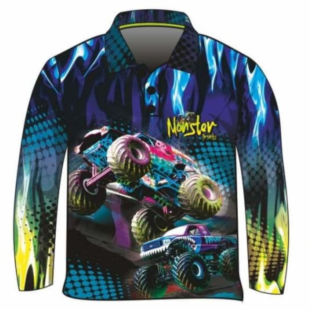 Does your little (or big) fellah love Monster Trucks? If so - our Monster Truck Blue Fishing Shirt is perfect.