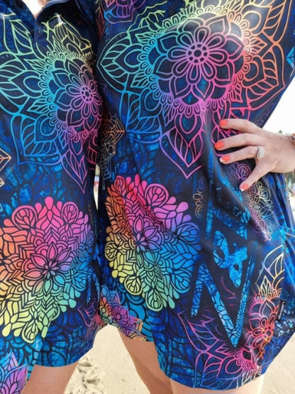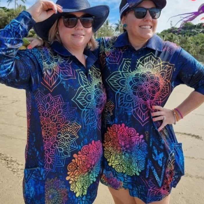 The perfect addition to your collection of sun safe fishing gear. Wear over togs at the beach, on your next fishing trip, down the golf course or even the shops. Staying sun safe never looked so good! We love this print! How amazing is the Kaleidoscope Mandala dress with Pockets!