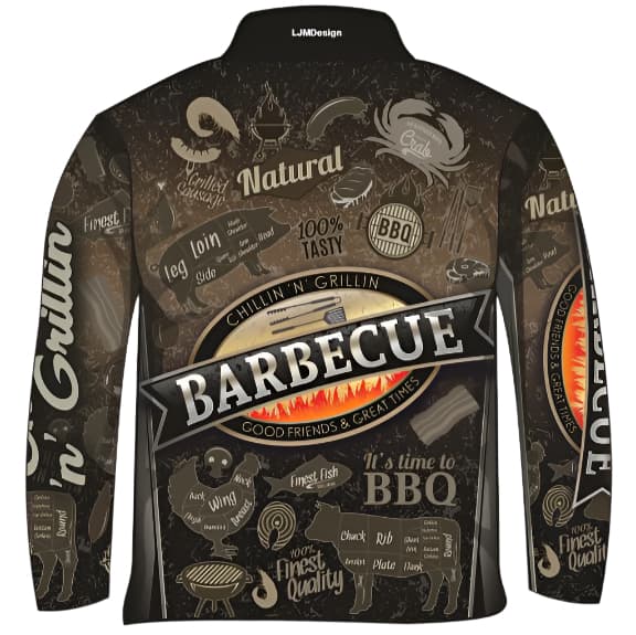 Let your love of the Grillin on the BBQ, the great outdoors and cold brews come together with this eye-catching "Chillin' n' Grillin'" shirt! This design will show off your love of the grill, with a juicy steaks and seafood graphics that's sure to turn heads. So, get ready to fire up the BBQ and get your hands on your own trendy Chillin' and Grillin' shirt!