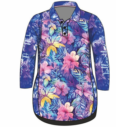 Are you dreaming of blue water, sunshine and family days at an island? Yes - us too. Get ready to channel your inner island hopper with the Tropical Atlantis Breeze Paradise Lifestyle Dress! This dress not only has pockets it showcases a vibrant purple tropical watercolour design with no cuffs, making it a breeze to roll up your sleeves and embrace those sunny beach days. And with Sun Smart quick dry technology, you can feel the breeze while staying comfortable and ready for paradise!