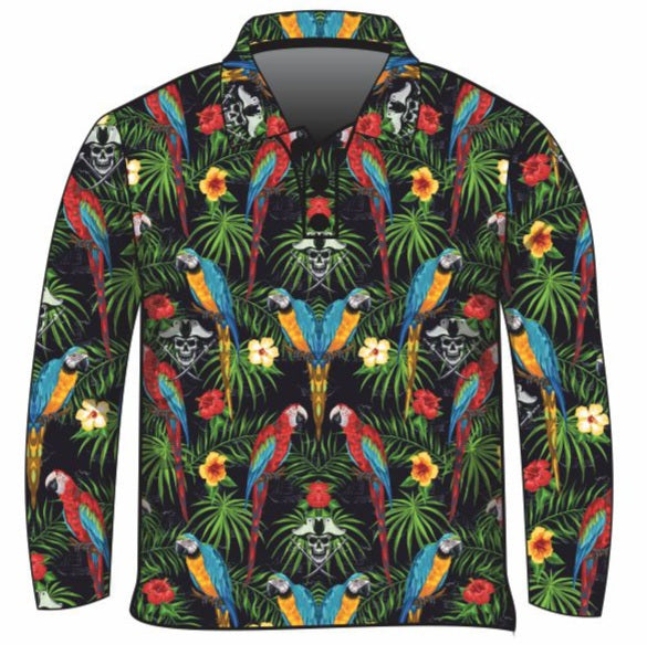Set sail in style with our Tropical Jolly Roger Shirt! Whether you choose long or short sleeves, this shirt is perfect for an island cruise. The pirate parrot design adds a fun touch while the sun smart and quick dry fabric keep you comfortable on your adventure. Get yours now!