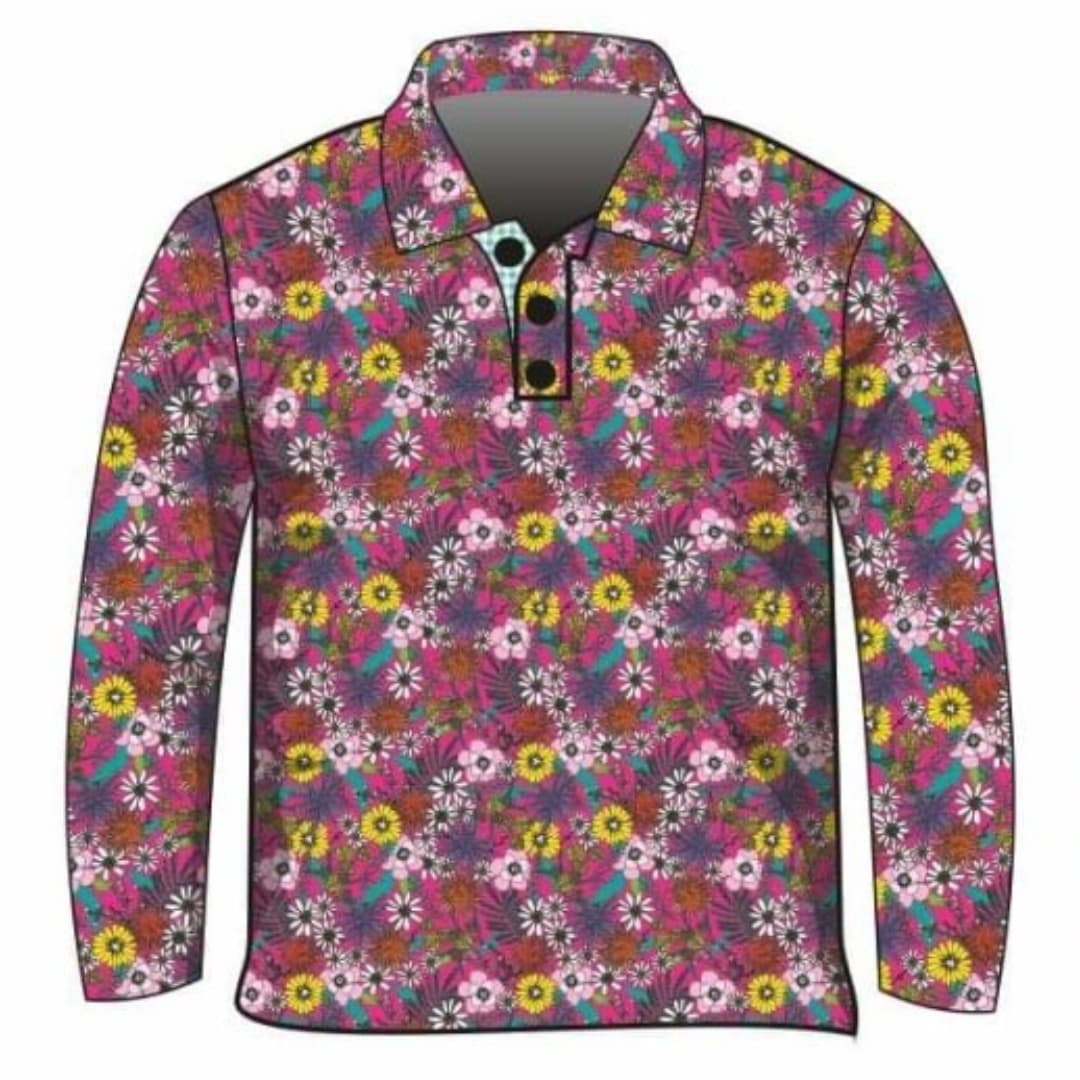 We love this look! Perfect with jeans for riding or skinny jeans and flats for a social occasion. Suited to everyday wear, these tops are the perfect pieces you won't be able to live without! This design features a fuchsia wildflower design with a reverse of gingham.